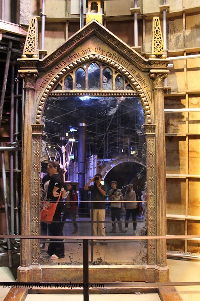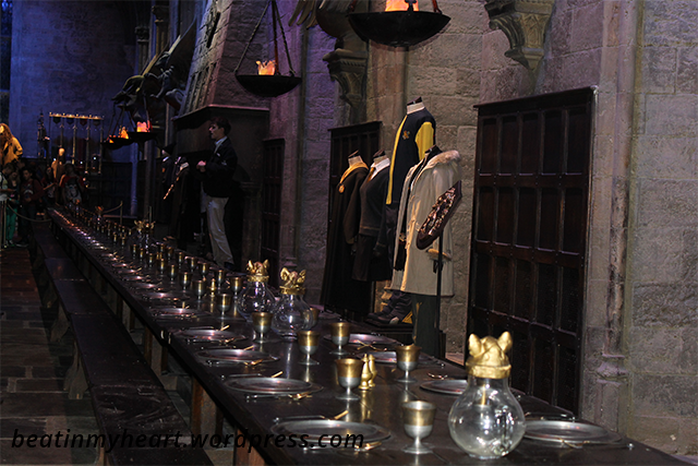 Sarath was bored initially and kept whining about going back to the hotel. After the initial video and some intoduction, we were on our own inside the great hall of Hogwarts ๐ It was a small hall. Much smaller than what it appears to be in the movie. I started explaining to Sarath what everything was, the different houses of Hogwarts etc and slowly he got interested. We saw the sets of Gryffindor common room, the mirror or Erised, Dumbledore’s office, potions classroom (where there were a couple of potions stirring themselves), Hagrid’s hut, the flying motorbike, Diagon alley, Privet drive, Harry’s house at Godrics Hollow, The Burrow (where they had displayed the self washing pans, self knitting sweater etc) and a lot of other items as well. It was wonderful. Sarath was so excited to see pans washing themselves, iron box ironing by itself, potions stirring themselves etc. He actually thought that was all actual magic and I did not have the heart to tell him otherwise.